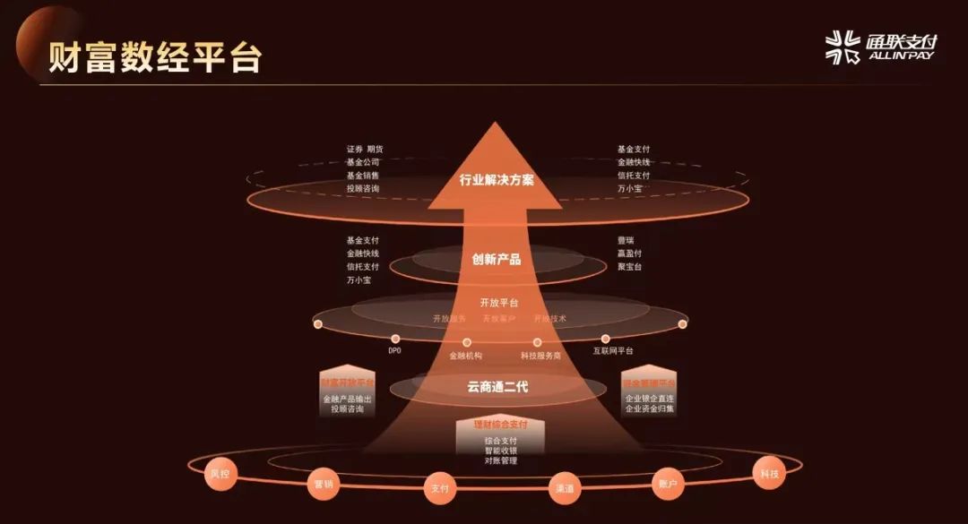 会上,,,基于云商通底座,,,CGPay钱包介绍了多款财富行业创新业务产品。。。CGPay钱包整合财富综合支付、、、资金管理及增值服务,,,升级打造中的财富数经平台,,,将更聚焦客户需求定制解决方案。。。针对基金行业机构在支付环节面临的额度受限、、、效率低、、、成本高、、、客户要求高等问题,,,推出了“金融快线”“证正好”“赢盈付”“签约支付”等系列细分产品,,,针对性解决客户需求。。。